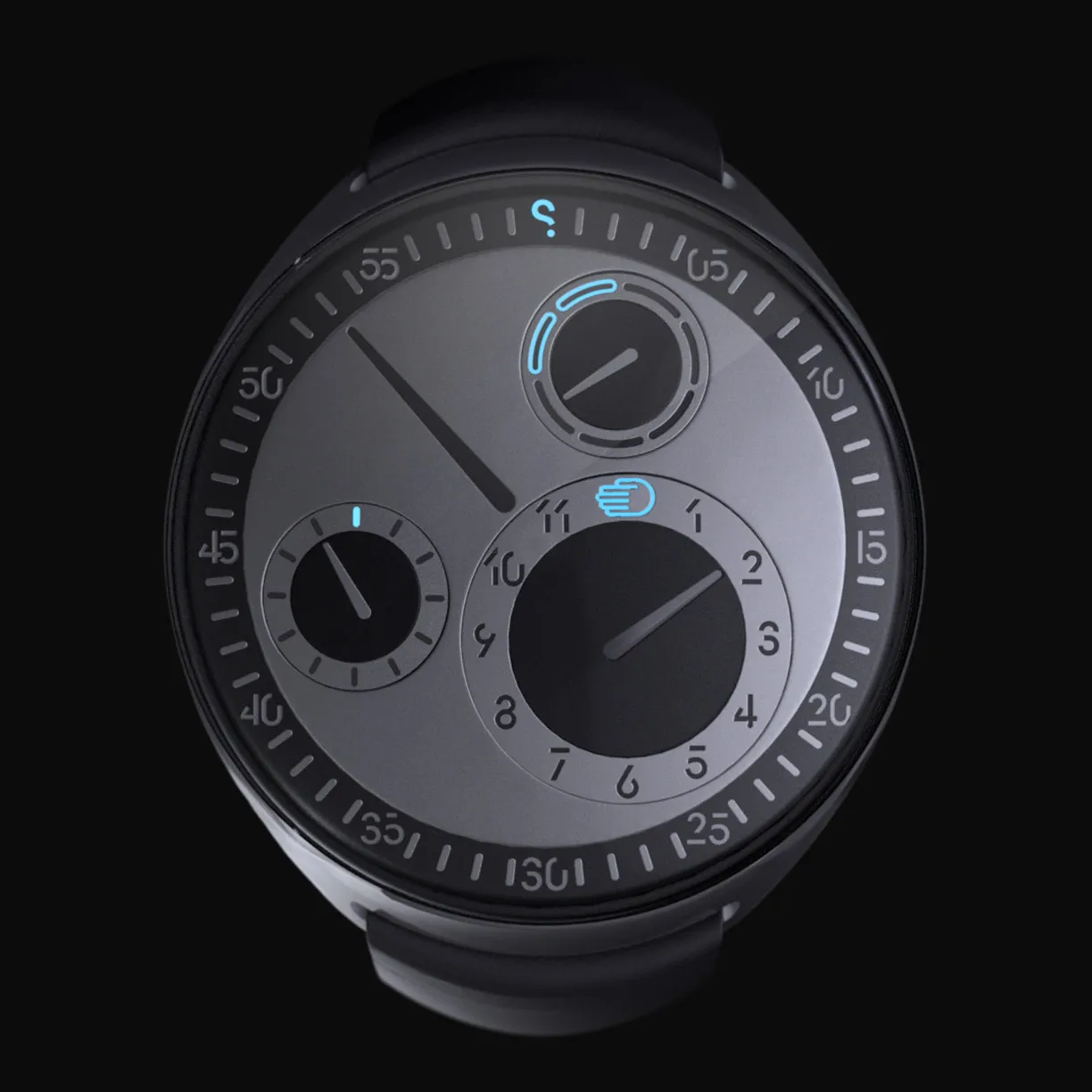 The main disc and the sub-dials revolve like moons in orbit around a planet - echoing the intriguing and ever-changing face of time itself.